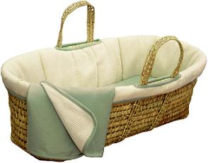 Terry Waffle Moses Basket Gift Sets are offered in sage,